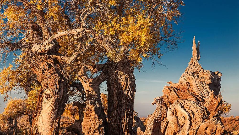 十月的大漠深处,胡杨林已经开始尽情地燃烧,以高调的姿态,展示着最为绚烂的华美。