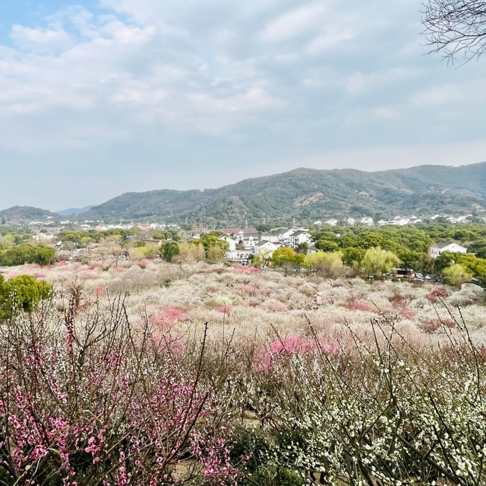 但真正让卖花渔村名声大噪的,还有漫山遍野的梅花。刚抵达山脚下,就能真切地闻到空气中浓烈的梅香。