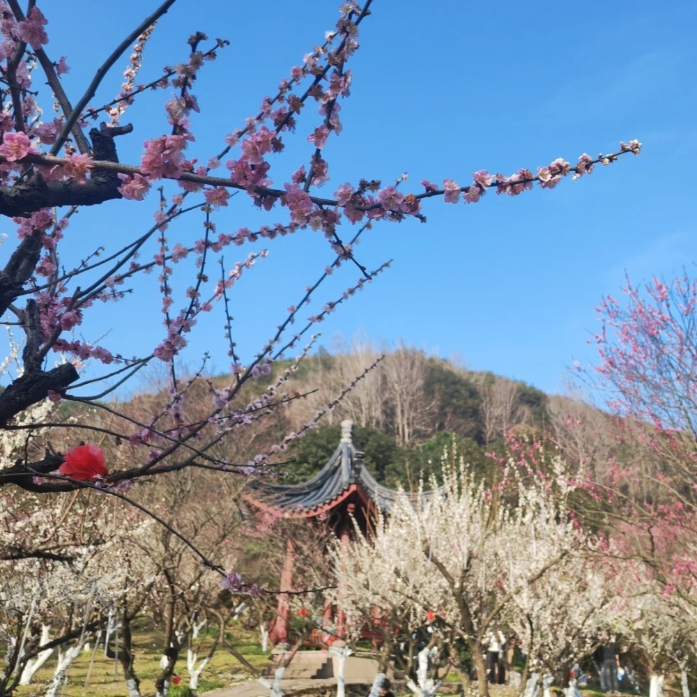 九峰山梅海,环山数百亩梅林连绵不断,面积之大、梅种之多、密度之高,是久享盛誉的江南赏梅胜地。