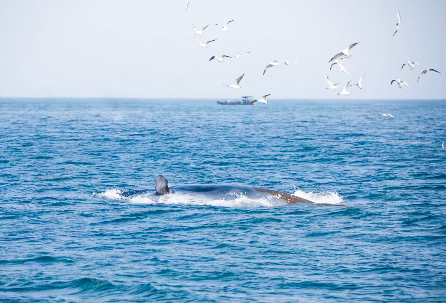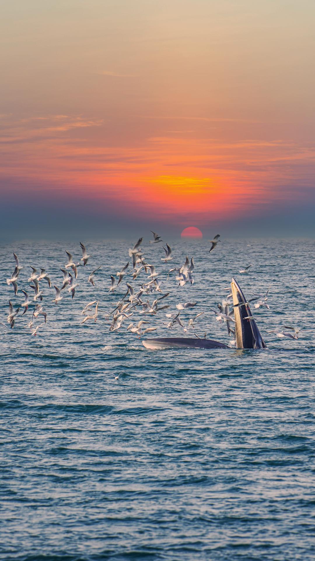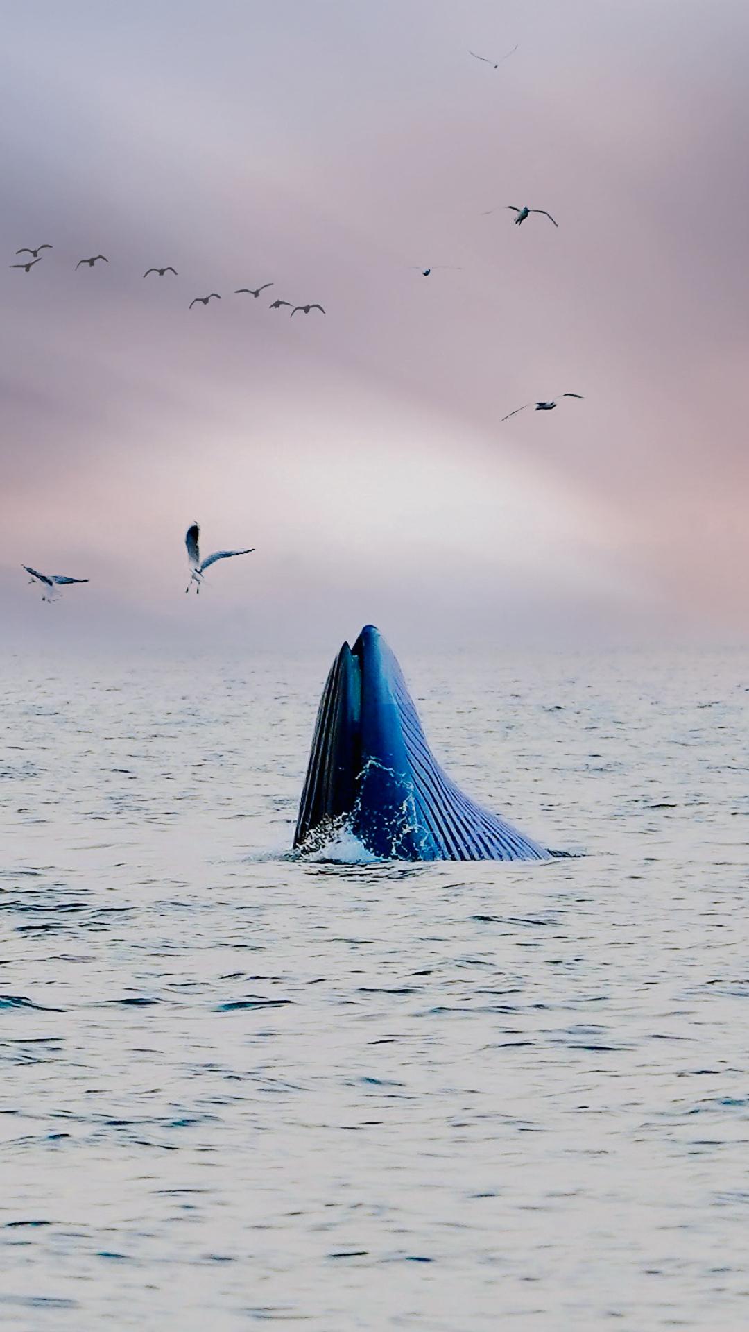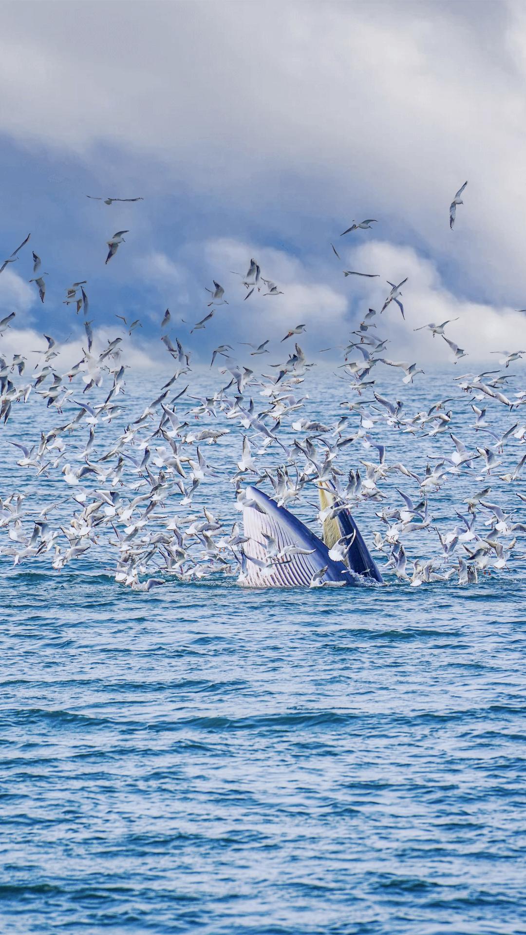 ✅ 寻鲸信号:跟着海鸥群准没错!布氏鲸捕食时会惊起大量鱼虾,海鸥会围绕着食物源盘旋,这是 “有鲸在附近” 的明确信号
