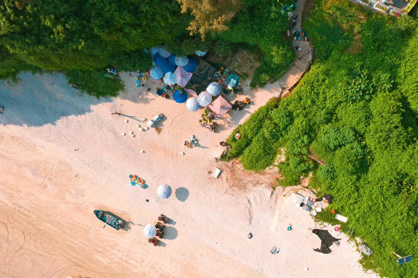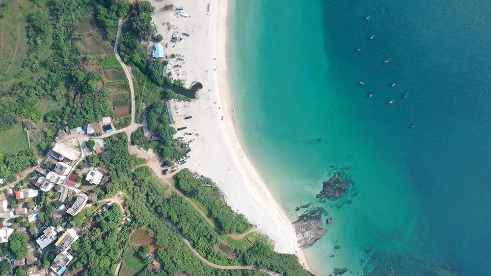 作为全岛最长海岸线,清晨的贝壳沙滩少有人扰,退潮后的沙滩上散落着海螺、扇贝碎片,阳光斜照时像撒了一地碎钻,适合静坐听浪。