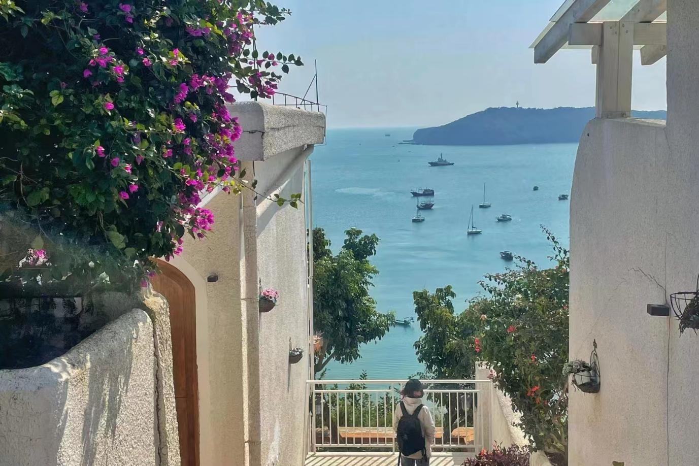 岛西悬崖花园的野花迎春盛放,紫色马缨丹、黄色野菊与蓝色大海形成撞色画卷,印证着 “面朝大海,春暖花开” 的诗意实景。