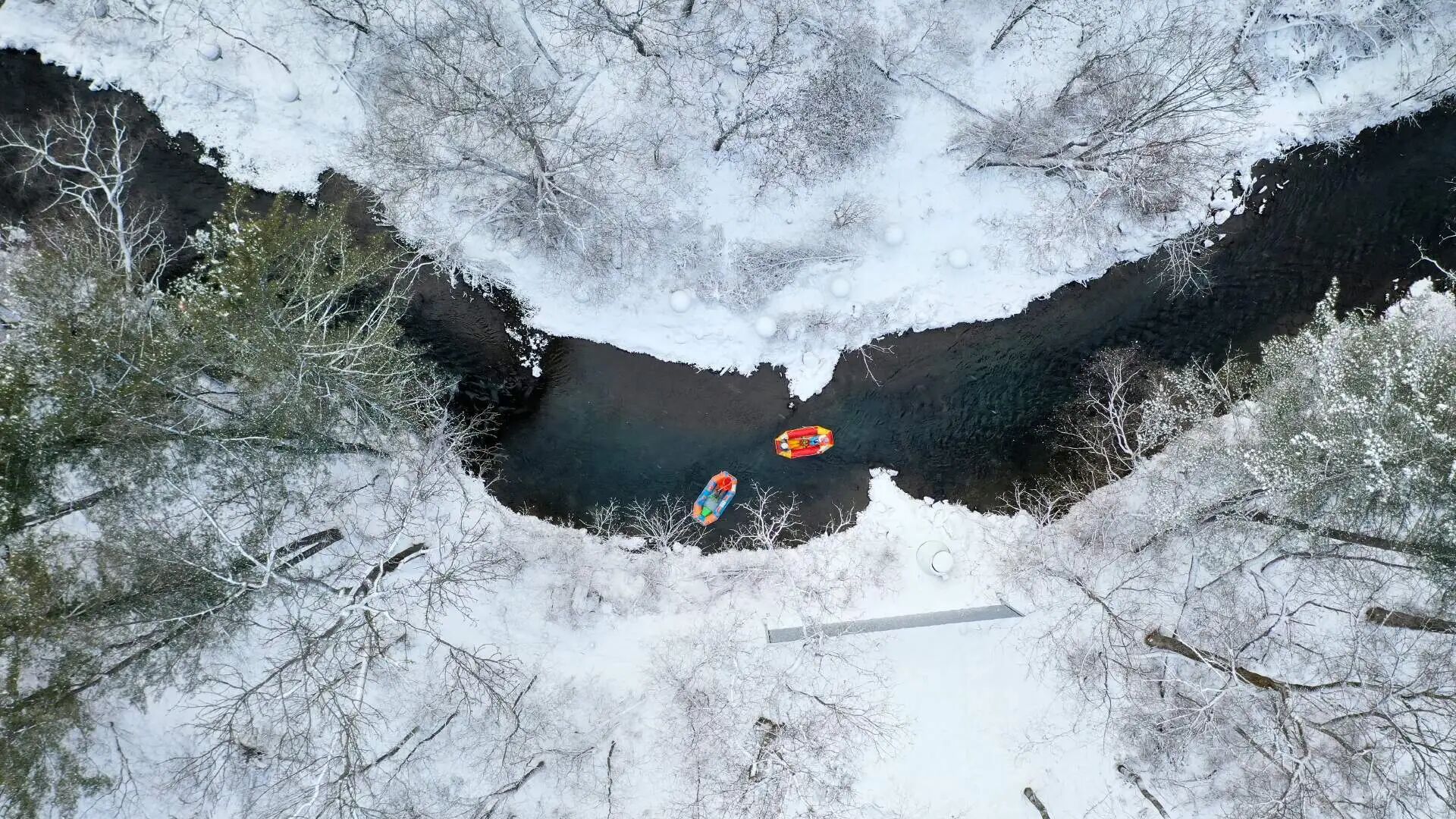 乘坐橡皮艇在不冻河上漂流