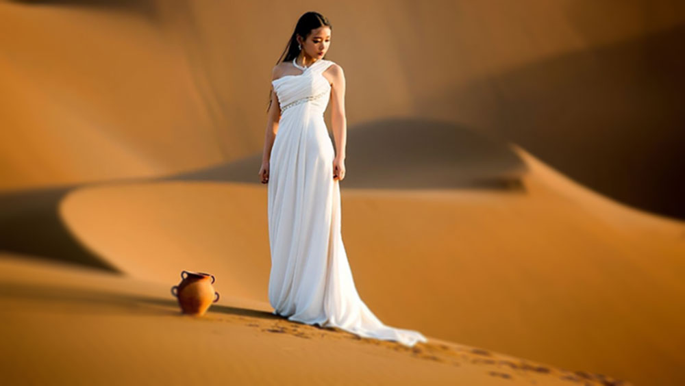 沙漠人像拍摄需要注意相机防护,可以购买适合的相机保护罩,尽量不要在沙漠上换镜头,以防进灰;