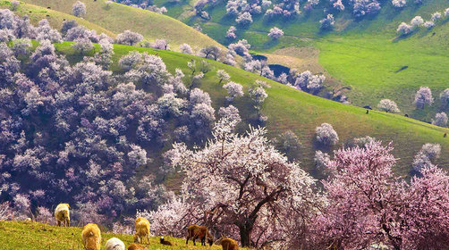 J**r今年起先报了南疆杏花春摄,由于恰逢沙尘暴大雪等恶劣天气前两天几乎没看到什么,尽管最后一天原路返回弥补了许多不足与遗憾,然而,南北疆杏花风格完全不同,就又报了北疆杏花春摄行程,事实证明我做了一个正确的决定👍因为在北疆看到了五年来最美丽的杏花盛开绽放状态!佳期难约,佳期如梦如幻,先后三次踏春赏花🌸,每次都🈶不一样的美感:吐尔根下午踩点,然三号台繁花似锦,光影交错,令人震撼👍翌日凌晨再次上山拍日出,虽然开始云层厚重拍不到日出,但耐心等待终究皇天不负有心人,拨云见日拍到了好风景👍第三次我们又来到杏花大峡谷,看到了杏花盛开的另一种绝美容颜👍山坡、峡谷、河流、牛羊、专场、放牧、牛车……,或许,这里更适合徒步,但对于热爱大自然的我且作为手机党我更喜欢这种原生态,未被商业化污染的环境🤗 快乐总是一瞬间,需要感谢的人很多,服务业并非金钱买卖,感谢司机师傅一路为我们保驾护航,平安启程与送达且不辞辛劳装卸行李;感谢漠漠领队热情指点手机党如何拍摄,寻找良好机位并为我拍照留念;感谢地导别克一路温馨陪伴,安排食宿,尤其是赛里木湖将热汤面改成了丰盛早餐,我吃到了最美味的新鲜大虾。导游不是一个好干的活,在新疆做地导则更难,不仅需要高情商更🉐把握好方方面面的分寸,我们听到了哈萨克民族风情等;也感谢玉倩美女把靠窗的座位让给我,还有团友们一路热情陪伴与拍照分享大片,美女们为我留下美好记忆🙏🙏🙏愿游侠客越做越好!愿团友们安康顺遂!相信来日咱们江湖有缘再约重聚🙏🙏🙏