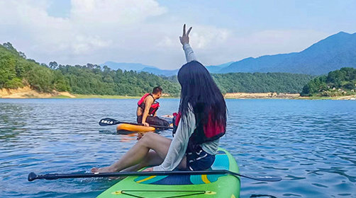 抵达基地后,教练讲解皮划艇知识与滑行技巧,穿好救生衣后,游侠可以桨板(单、双人)或 皮划艇(双人)二选一,一起下水~