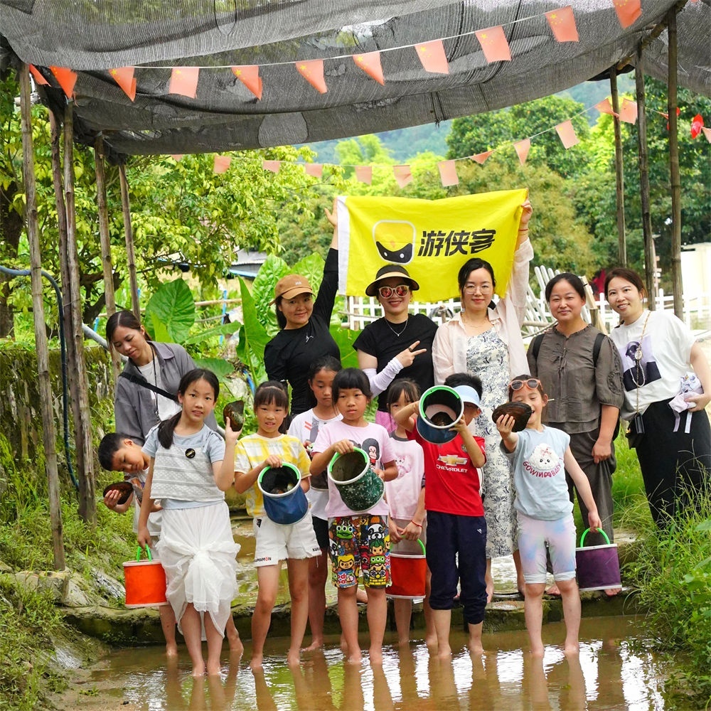 挖珍珠亲子一日首发圆满收官。相逢山水间,感恩遇见! 适逢端午佳节的挖珍珠之旅结束了,是有趣有爱疯玩又涨知识的一天!玩的太嗨,今天才有时间来慢慢记录回味: 一、懵圈报名 由于不久前参加了亲子挖宝藏,游侠客镜子领队带着我们几个家庭玩的很开心,娃一直嚷嚷着说还要去寻宝。就开始寻找类似的团,发现了寻珍珠奇遇,于是马上报名,开心的发动小伙伴们一起参加,兴致勃勃的期待着挖呀挖呀挖珍珠。后面好组家庭因为我的发动报名了,秉着对队友负责的态度,开始去了解这个团的具体情况。在不断跟镜子领队沟通了解过程中,发现这是首发团,我们是第一批游客。作为一个从未参加过首发团的老游侠,忽然感觉压力山大。虽然已经是近十年的老游侠,参加过腾格里沙漠、西藏全景、湘西徒步、星溪线、黑沙滩等经典路线,体验都无一例外的美好、令人回味。但首发是从未尝试过的,印象中首发相当于小白鼠,而家里的小老板又坚持必须端午节去挖珍珠,箭在弦上的我被逼着开始仔细研究行程,看到珍珠环节只有一个多小时,而下午的安排是直接大巴送到营地溯溪玩水,怎么看都觉得内容单调不够丰富,而且端午节去没有任何的端午元素,此刻的我焦虑症和完美主义病症开始上线,不停找镜子领队沟通能不能增加一些行程安排,妄图通过这样缓解内心的不安。镜子在我的狂轰滥炸下不堪其扰最后扔给我一个号码:“找产品经理沟通一下吧。” 二、沟通无果 听说找产品经理能解决问题,我毫不犹豫果断打过去,说明已经报名挖珍珠路线并且有几组家庭一起,噼里啪啦说了一通表达希望能丰富一下行程内容,比如能否增加挖珍珠的时间和科普内容,是否可以增加徒步环节,让孩子们增进感情,是否可以增加看龙舟赛,增加端午相关传统习俗的科普。产品经理阿悦非常耐心的听我一通输出,然后为难的告诉我:“挖珍珠是营地有安排,会有足够的科普时间和泥塘摸珍珠体验以及螺钿饰品手作体验,下午没办法增加徒步。中午尽量找个可能看到龙舟赛的饭店午餐,但有没有比赛看运气。”我颓丧的想,这不就是说了等于没说。只能怀着忐忑的心祈祷一切顺利。后来才知道产品经理阿悦因为我的电话当天特意找了两位领队带队,还计划自己做副领队来参加首发为我们服务,感觉又愧疚又暖心,在此表达衷心的感谢。 三、惊喜连连,流连忘返 到现在,完全可以底气十足的说此行值得了。从破冰开始,领队梓琳小姐姐、小摩托就为我们准备了很多的奖品,水枪、渔网、漂亮的粽子香囊、端午节专属徽章,丰富的奖品吸引小朋友们积极自我介绍、展示才艺,背诗、手势舞层出不穷,社恐都变社牛了,家长们高兴坏了,梓琳小姐姐说这是她带过最容易热起来的亲子团。去往挖珍珠的营地,经过大片挂满小果实的荔枝林,一片已经改造成民宿的土坯房,就来到目的地了。乡野池塘边,搭着大片的天幕,在这里听科普老师讲解珍珠知识,问答互动。原来珍珠是因为珍珠蚌被寄生虫或砂砾侵入,母贝不停地分泌珍珠质包裹外来物,经过长时间的积累而形成的,所以说珍珠是贝壳的眼泪,珍珠有各种各样的形状和颜色,目不暇接。摸珍珠蚌也很好玩,大人小孩摸到了都兴奋的乐开了花,我们三个人摸到了6个,把孩子高兴坏了。开珍珠蚌、清洗珍珠、领取手工材料制作螺钿珍珠饰品,有多种款式的钗子、胸针可以挑选,自由搭配螺钿、珍珠。这个过程很锻炼家长和孩子们的耐心、沟通和审美,大家都专注的制作,顾不得时间和肚子,原定1个小时完全不够,足足延后了1小时,先制作完的可以去营地射箭、踢足球、玩游戏,都是免费提供。由于当天来参加珍珠活动的家庭特别多,其他亲子团大人都没有珍珠蚌和工具,只给小孩体验,特别表扬梓琳领队给我们游侠客争取特别待遇,每位游侠都有一份珍珠蚌和手工材料,nice!最后,可以看出大部分的手工成品都很精美,由于提前做了功课,我们选的珍珠蚌开出的珍珠特别多,非常惊喜!午餐安排的饭店和菜式也是要大赞的,500元/桌的餐标,吃到烧鹅、烧鸡、烧肉,莲藕剁肉煎饼、酿豆腐、枸杞猪肝汤等十菜一汤,出品和分量都让全团赞不绝口,良心!原本不抱期待的戏水环节,出乎意料的完全没让我们失望!沿溪而上,山清水秀,溪水清澈见底,有种小贵州的感觉,一路搭着天幕,很多慕名而来的人们已经在悠闲的享受这新鲜的空气、潺潺的流水……到达我们营地,孩子们立马兴奋的打水仗,长枪短炮、手舞足蹈,虽然水有些凉,我还是没忍住诱惑加入其中,跟孩子们一起全身心的投入、放松,让水打到身上,再去攻击别人,开心的像个孩子。感谢游侠客,让我们拥有了一个愉快又有意义的端午节、儿童节!感谢我们这个团的所有团友,大家友善、包容,乐于分享、互帮互助,共同营造了一个非常融洽的氛围,孩子们也能毫无顾忌的一起玩耍。 四、小小的建议 1.珍珠环节要多备一点时间,需要更多时间完成螺钿手工作品。 2.可以提醒游客在午餐后就换衣服,玩水营地因为在未开发的山间,洗手间环境很一般,换衣服相当费劲。 最后,必须五星好评+强烈推荐!